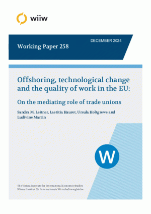 BookSeries: wiiw Working Papers: 258Publisher: Wien : Wiener Institut für Internationale Wirtschaftsvergleiche (wiiw), 2024Description: 71 S., 27 Tables and 3 Figures, 30cm.Subject(s): Trade unions | offshoring | technological change | atypical employment | skills mismatch | multilevel analysisCountries covered: EU28wiiw Research Areas: Labour, Migration and Income DistributionClassification: F16 | F22 | F66 Online resources: Click here to access online Summary: This paper analyses the impact of different types of offshoring and technological change as well as the mediating role of trade union representation at the firm level on the quality of workers’ jobs in the EU in terms of atypical employment, which is further differentiated by type of atypical employment (i.e. temporary contracts and involuntary part-time work) as well as self-reported skills mismatch. It uses worker-firm-level data from the 2015 and 2021 European Working Conditions Surveys (EWCSs) merged with industry-level data on offshoring; the information and communication technologies (ICT) asset types of information technology (IT), communication technology (CT), and software and database (DB) technology; and robotisation. The results show that a worker’s likelihood of being in atypical employment is related to both forces analysed but in different ways, as there is a higher probability of being in atypical employment due to offshoring or IT but a lower probability of being in atypical employment due to CT. The two types of atypical employment are affected differently, with strong differences being found between workers in manufacturing and services industries. Both forces are of limited importance for workers’ self-reported skills mismatch and, as such, only temporarily lead to over-skilling in the case of offshoring but to under-skilling in the case of technological change. Trade union representation at the firm level only plays a limited mediating role in the likelihood that workers are either in atypical employment or report a skills mismatch.